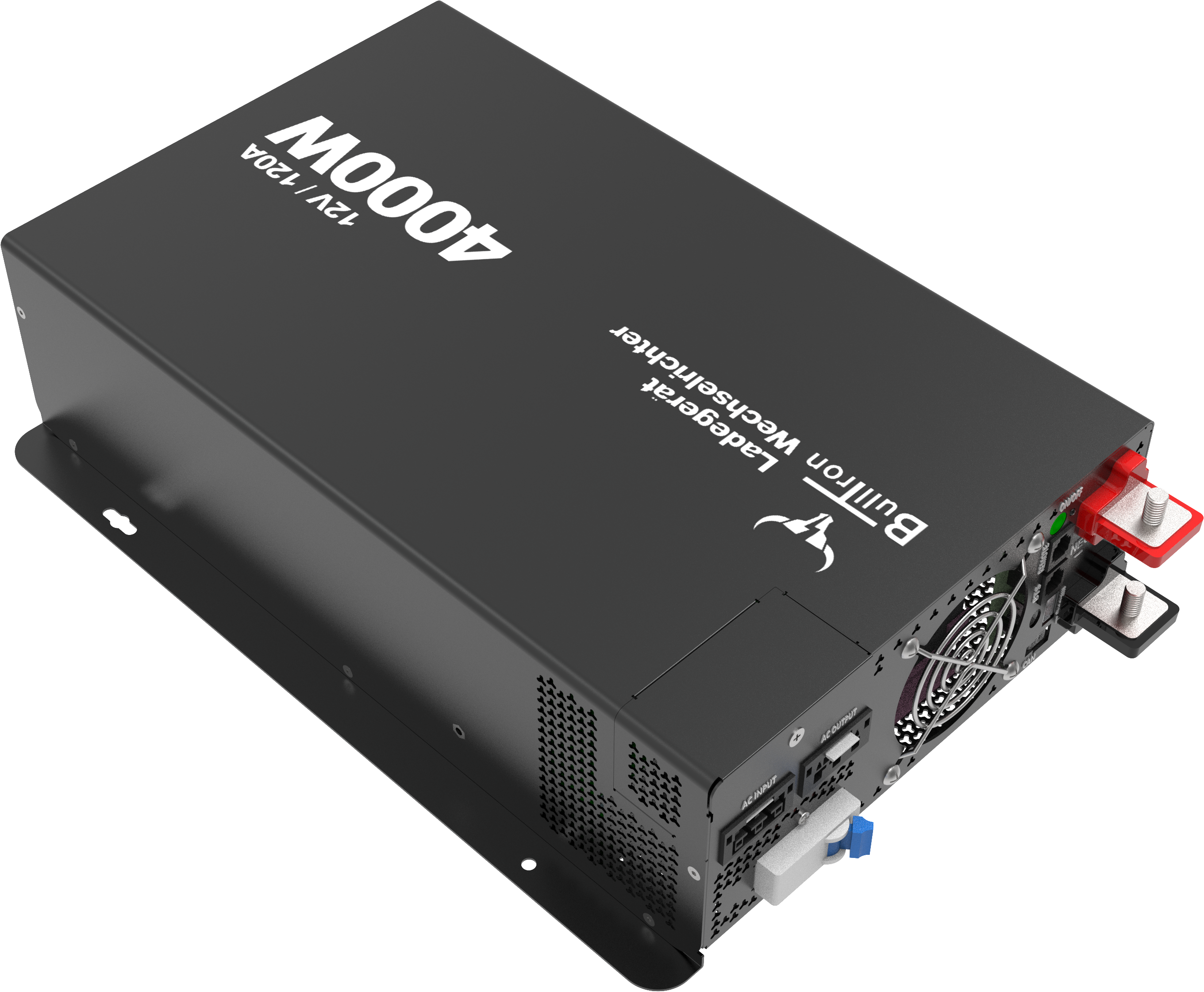 A powerful 120A charger is integrated for fast charging of even large batteries, as well as a display unit for remote control.